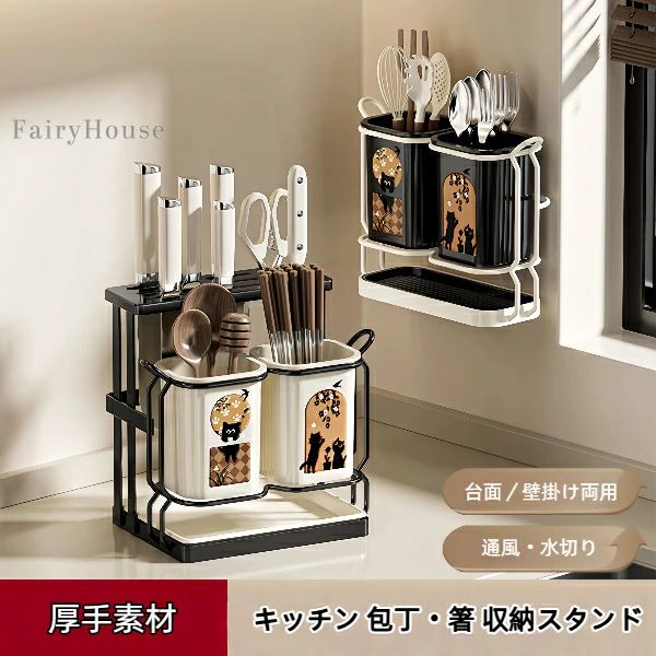 キッチン 包丁?箸 収納スタンド 台面/壁掛け両用 通風?水切