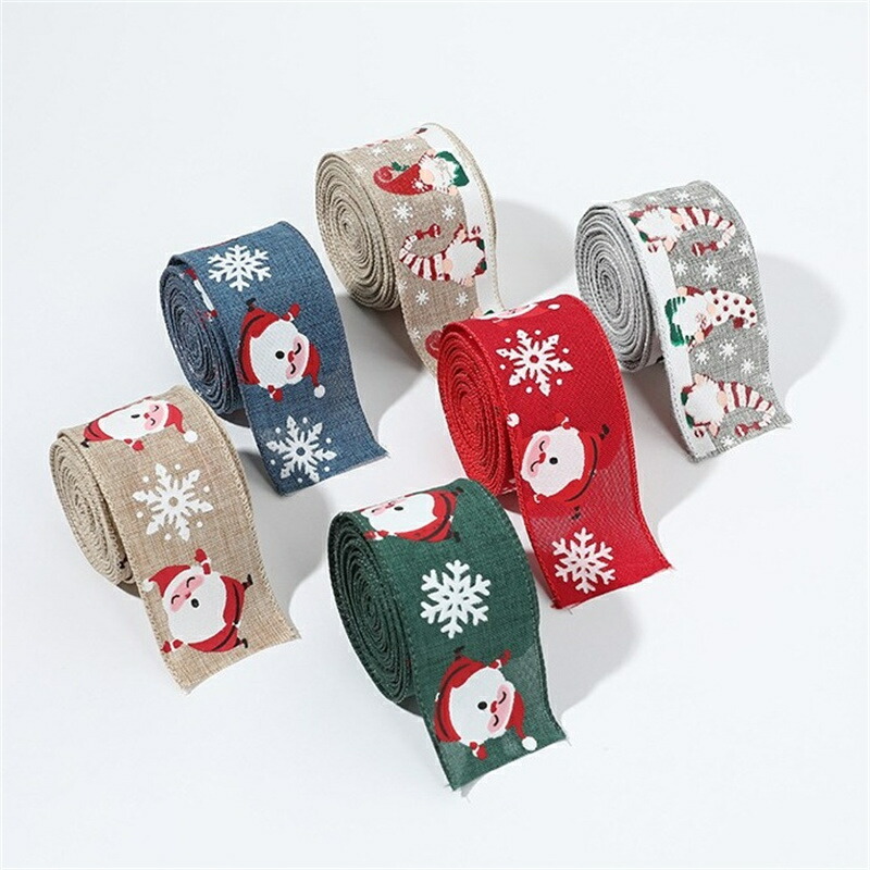2m*2巻クリスマスリボンテープクリスマスツリー飾りナチュラルラッピング飾り巻きヒイラギ柊ワイヤーリボンサンタクロース雪だるまトナカイチェック柄手作りオーナメントプレゼント梱包包装装飾diy用かわいい