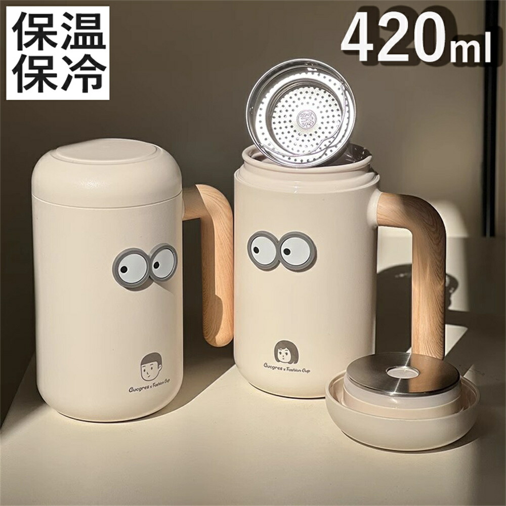 ステンレス水筒 真空断熱 ボトル ステンレス 保温 保冷 直飲み 茶こし茶漉し 茶の葉 お茶 ハンドル付き お揃い 3Dステッカー 贈り物 シンプル おしゃれ プレゼント