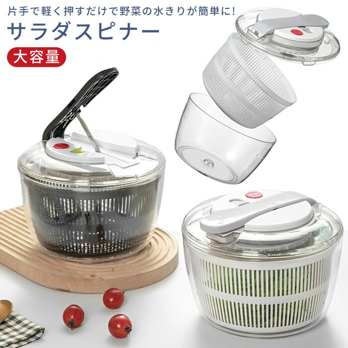 サラダスピナー 水切り器 野菜 水切り 野菜みずきり 野菜水切り スピナー ボウル ザル プッシュ式 野菜水切り器 サラダ 水洗い 回転 時短 保存容器 冷蔵庫 水切りボウル キッチン用品