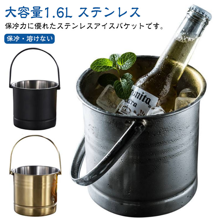 氷入れ 無地 シャンパンクーラー 大容量 保冷容器 業務用 アイスバケット 持ちやすい ステンレス アイスペール ワイン 溶けない 丈夫 ワインクーラー 1.6L 家庭 バー用 飲食店 軽 パーティー