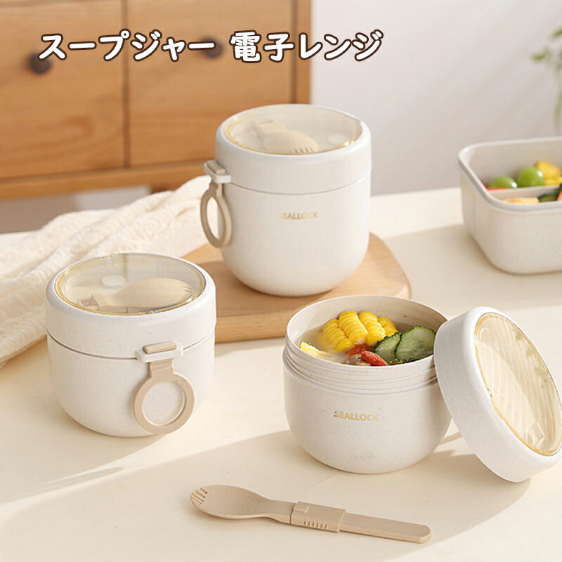 レンジ対応 スープジャー 電子レンジ スープ缶 580 ランチスープジャー 電子レンジ対応 お手入れ簡単 フタ内蔵 カトラリー便利で衛生的 持ち運びハンドル 簡単取り