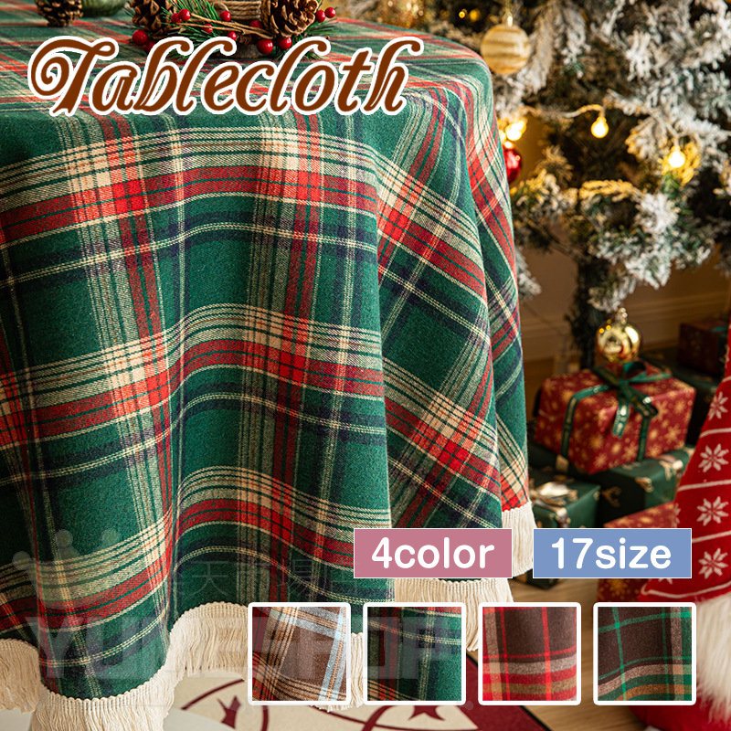 テーブルクロス 円形 丸形 クリスマス 長方形 正方形 角型 タッセル フリンジ付き テーブルカバー 傷防止 食卓カバー お正月 新年 汚れ防止 雰囲気 部屋飾り デスクマット チェック柄 お 店飾り