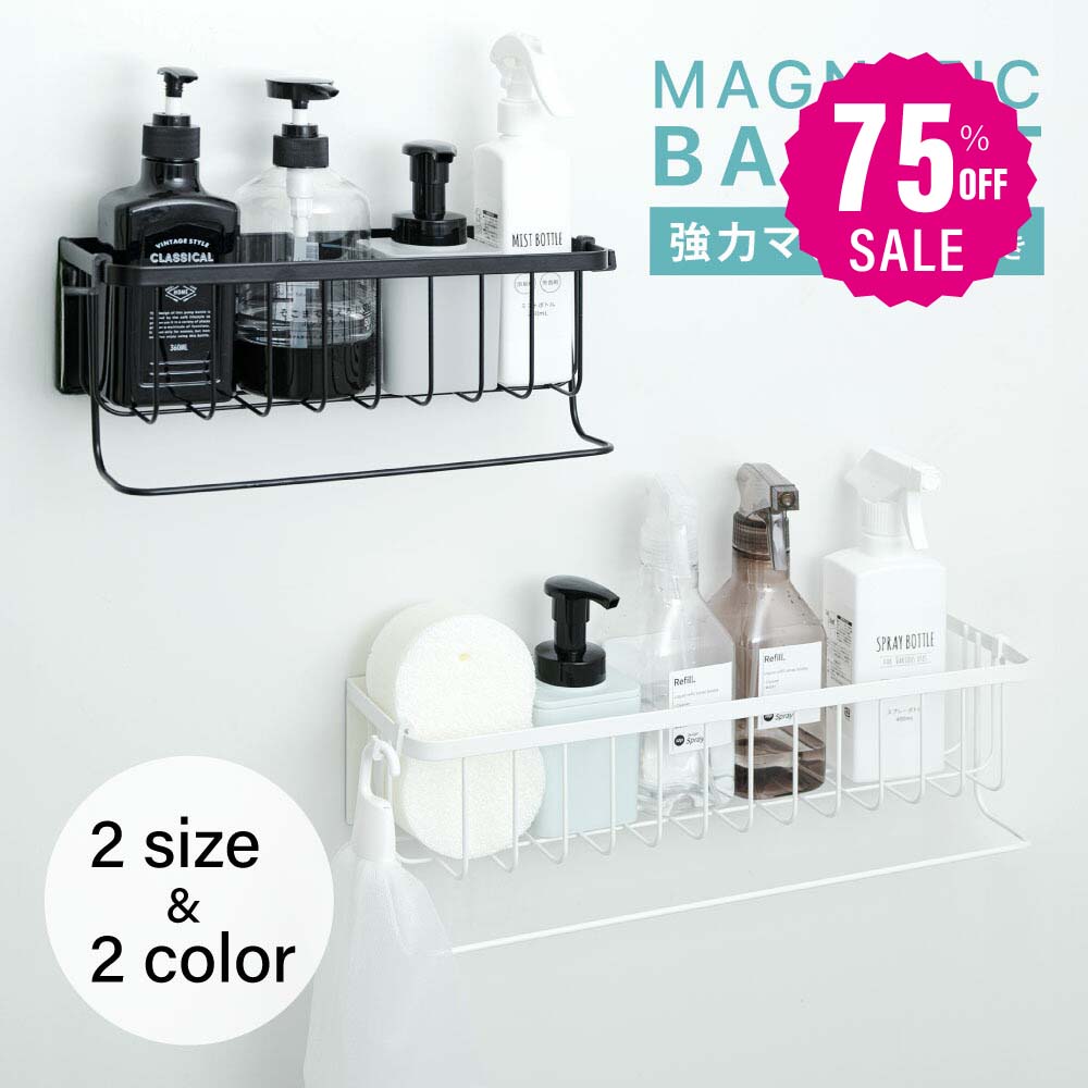 浴室ラック マグネット 収納 棚 バスルーム バスケット バスラック お風呂 浴室 かご 磁石 ボトル 壁面収納 浮かせる シャンプーボトル ホワイト ブラック シン おしゃれ