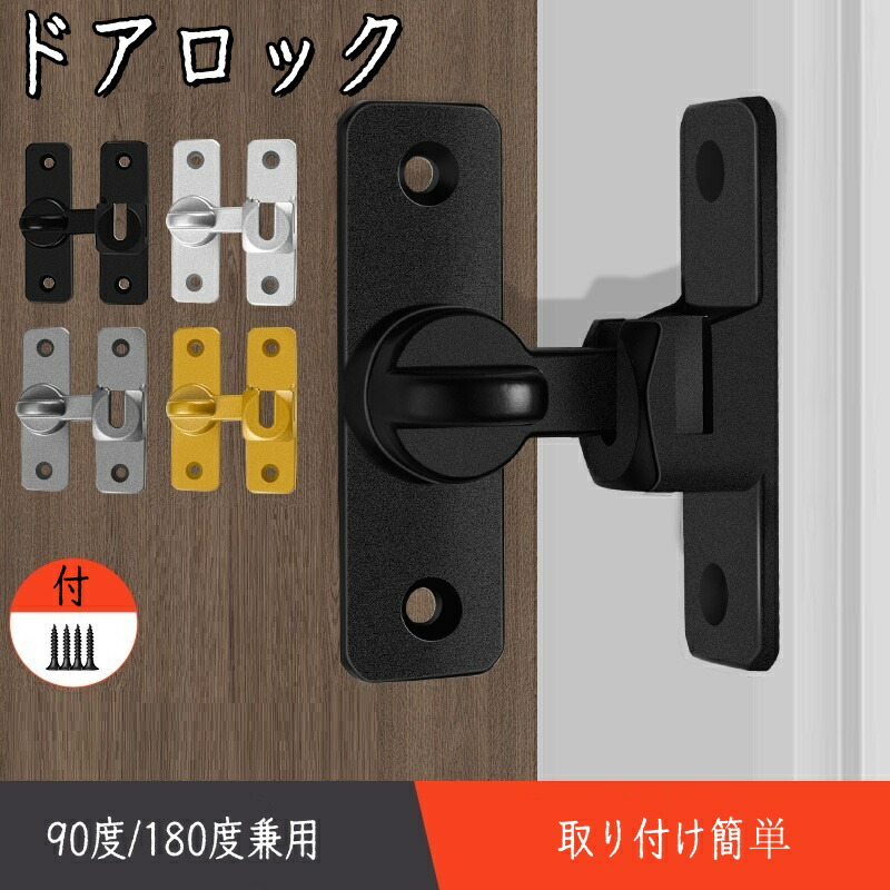 ドアロック 90度 180度 兼用 引き戸 鍵 後付け 取り付け簡単 亜鉛合金 防錆 耐久性 部屋 玄関 室内 補助錠 室内ドア 耐震ラッ 防犯リビング 寝室 業務用 いたずら防止 対策取り付 家庭用