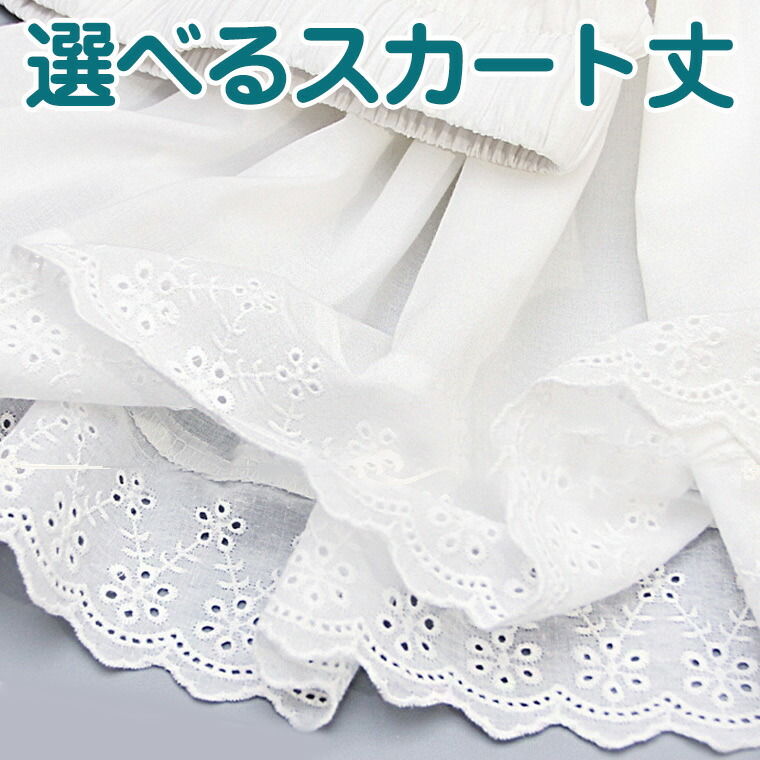 75cmまで 選べるスカート丈 スカラップ ペチコート ペチスカート スカート ナチュラル ガーリー 綿 コットン レース ロング丈 白 スカラップレース 重ね着 インナー 裾レース
