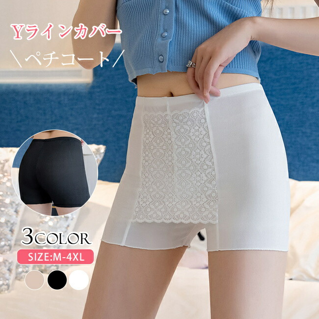ペチパンツ ペチコート レディース 綿 インナーパンツ ショート丈 ワンピース下 春 夏 秋 コットン ゆったり ナチュラル 透け防止 白 黒 かわいい 下着 裾 スカラップ 大きいサイズ
