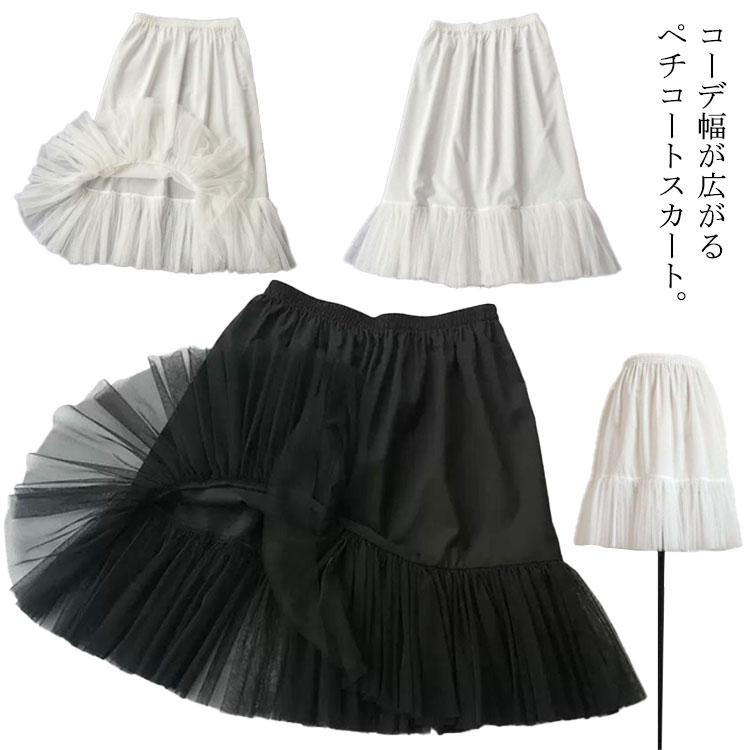 ペチコートスカート スカート 裾ふんわり 重ね着 ロング ペチスカート 下着 ミモレ 膝丈 インナー チュール ペチコート レイヤード レディース マキシ ブラック 白 黒 ホワイト 春 ウエストゴム
