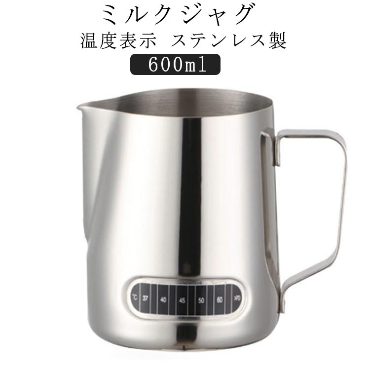 コーヒー 温度表示 600ml ステンレス製 ラテアートカップ コーヒー用品 ミルクピッチャー ミルクカップ ドリンクピッチャー ミルク泡立てピッチャー コーヒーラテアート用 ミルクフォー ラテアート
