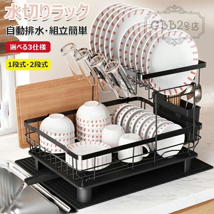 水切りラック 食器 水切り 1段式 2段式 水切りかご 食器水切りラック 水切り食器 食器カゴ 食器乾燥棚 食器乾燥ラック 洗い物ラック 大容量 自動排水 洗い物カゴ