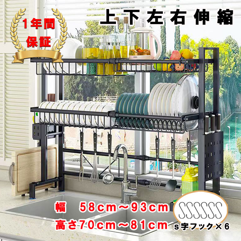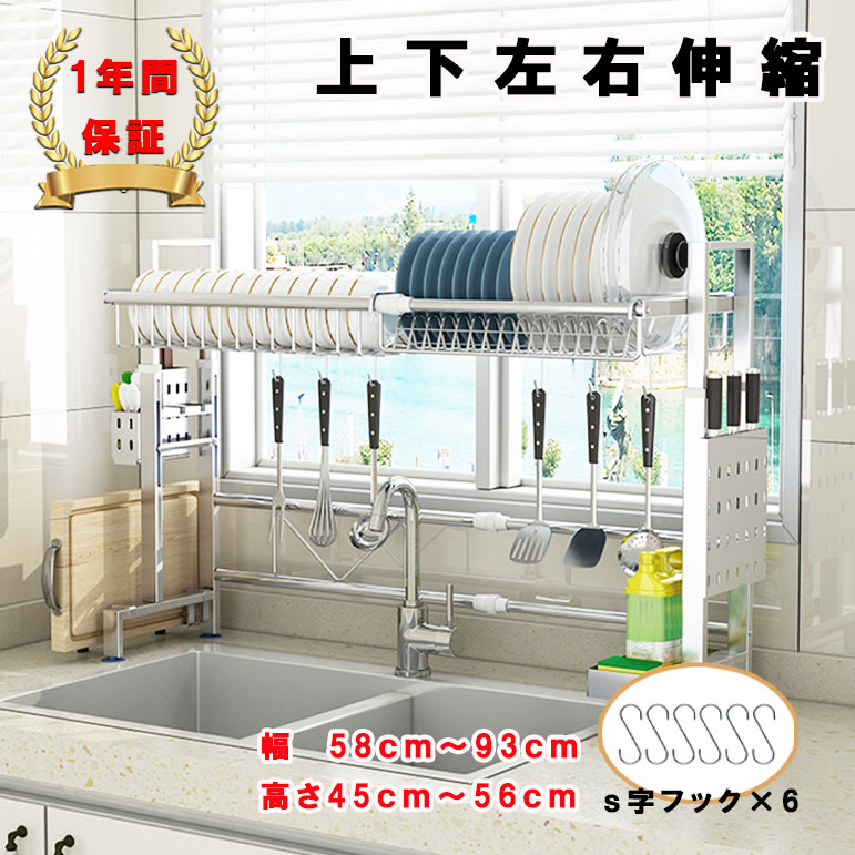 水切りラックシンク上スリム上下左右伸縮おしゃれキッチンコンパクト一人暮らしシンク上 ラック 箸立て フタ立て 包丁立てバスケットS字フック まな板立て