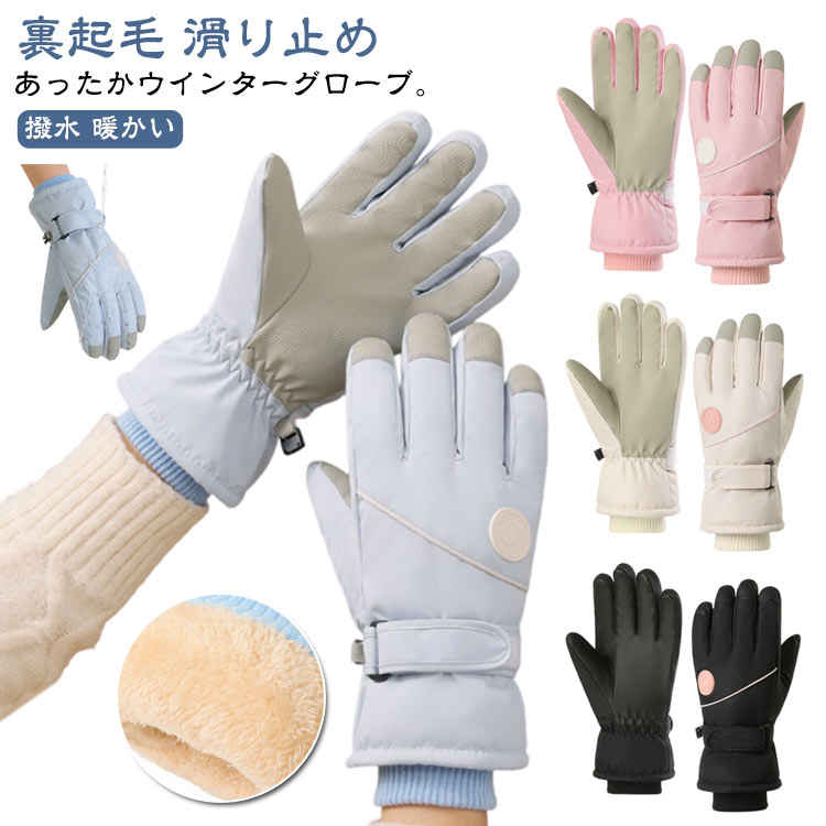 スキー 防風 滑り止め 裏起毛 スマホ対応 スノーグローブ 五本指 かわいい グローブ 防水 手袋 スノーボード スノボ 配色 レディース 防寒 アウトドア バイク 自転車 スポーツグ 登山