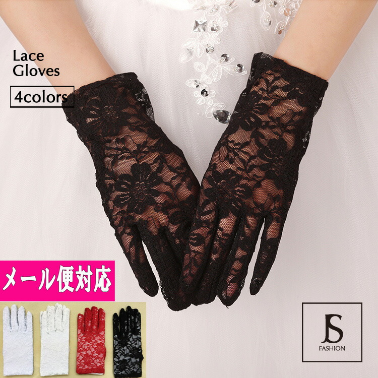 レース手袋 グローブ ブラック ホワイト アイボリー レッド パーティードレスに合わせて フラワーレース ショート丈 パーティー小物 結婚式 二次会 発表会 披露宴 仮装 冠婚葬祭 ダンス ハロウィン