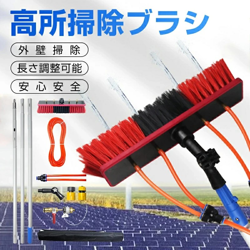 外壁掃除ブラシ 高所掃除 給水伸縮ブラシ 窓掃除 窓拭き 窓ガラス 壁掃除 高所ワイパー 長さ3m~12m選択可能 高強度 外壁掃除 業務用 取り外しが簡単 伸びるロングモップ 超ロングポール 軽量