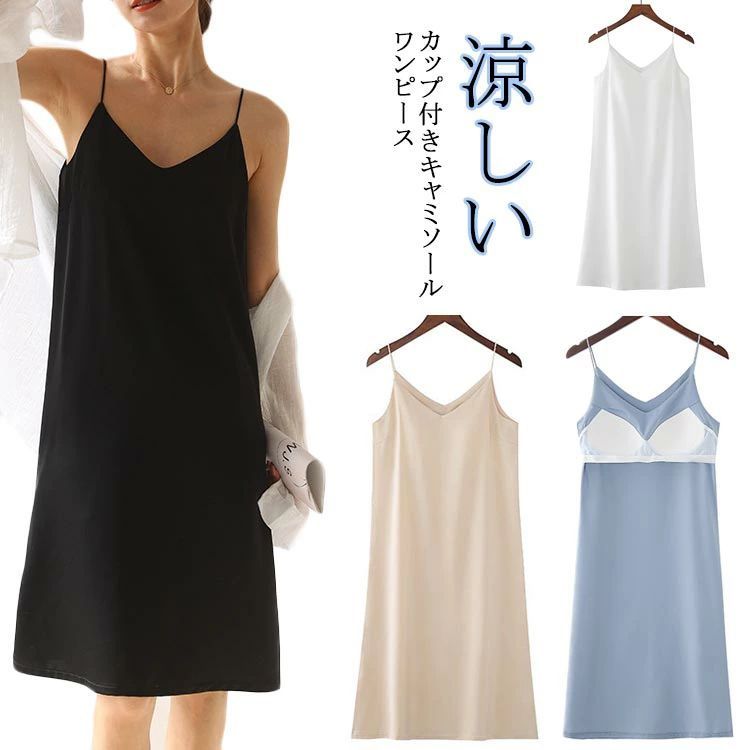 スリップ ブラ ワンピの下 ランジェリー 下着透け対策 涼しい 下着 ロング ネック キャミワンピ ワンピインナー 肌着 キャミソール インナー 透け防止 袖なし キャミワンピース ペチコ カップ付き