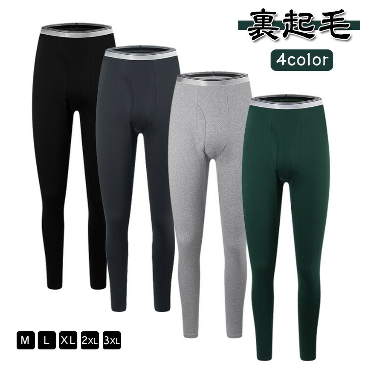 メンズ インナー 男性用 秋冬 防寒 あったか 厚手 裏起毛 レギンス スパッツ ポリエステル 黒 白 灰色 無地