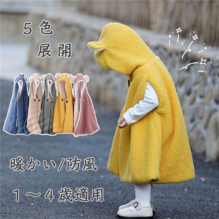 マント 子供 ポンチョ キッズ 防寒 ベビー ケープ コート 子供服 フード付き 着ぐるみ モコモコ 暖かい カワイイ 耳付き クリスマス お誕生日 プレゼント ボア 出産祝い