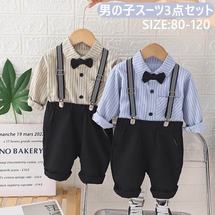 記念写真 80 90 100 110子供服 フォーマル スーツ 上下セット 男の子 おしゃれ 受験式 面接 お祝い イベント バースデーフォト サスペンダー 保育園 蝶ネクタイ 発表会