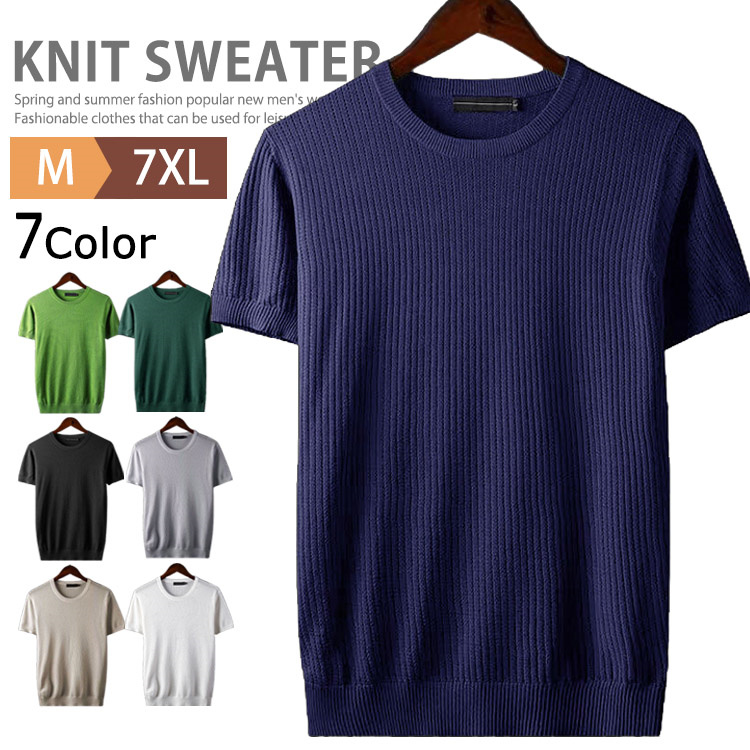 半袖 サマーニット メンズ 薄手 無地 Tシャツ クルーネック サマーセーター ニットTシャツ ゴルフウェア ルームウェア ビジネス カジュアル 半袖ニット トップス カットソー インナー おしゃれ