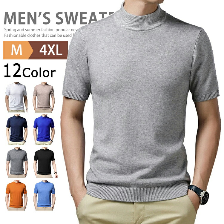 ニットセーター メンズ ハイネックtシャツ 半袖 ニット ゴルフウェア セーター インナー ビジネス 紳士服 春秋 カジュアル サマーニット サマーセーター トップス ルームウェア スリム おしゃれ