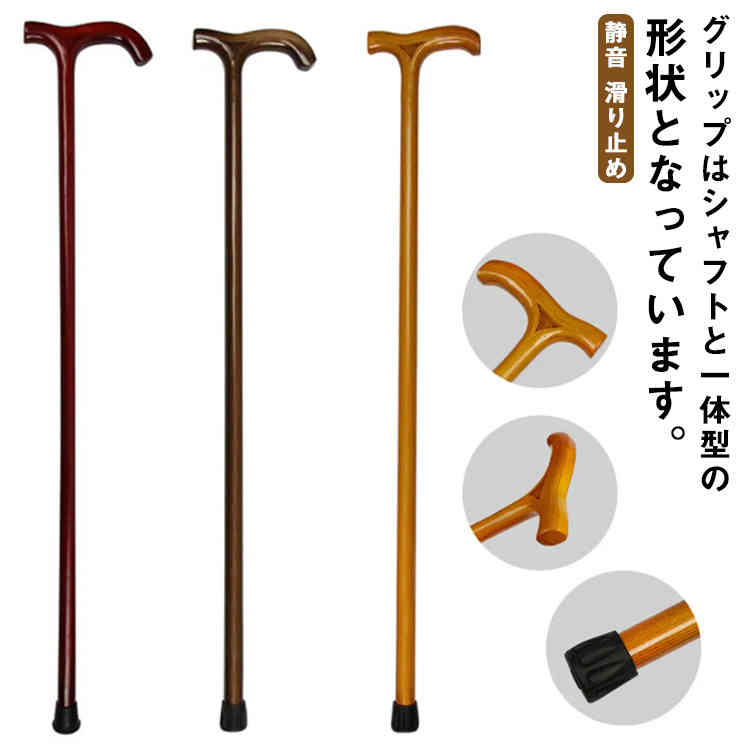 杖 ステッキ 木製 一体型 1本杖 軽量 静音 滑り止め 丈夫 軽い 太め つえ 介護 高齢者 シニア お年寄り 敬老の日 ギフト プレゼント 女性用 男性用 低身長 父の日 祖母 おしゃれ 無 祖父