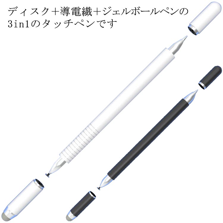 android タッチペン 極細 スマホ おしゃれ 絵描き用 iPad iPhone 3in1 スマートフォン 充電不要 ディスク+導電繊維 タブレット ゲーム 両側 ジェルボールペン 持ち イラスト