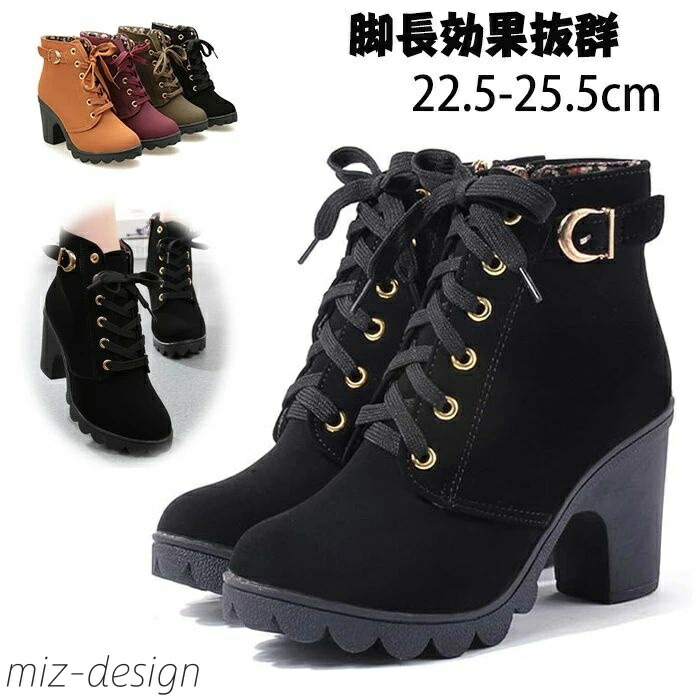 ブーティー 歩きやすい レースアップ ハイヒール ハイカット レディース ブーツ サイドジップ ブーティショート 厚底美脚効果