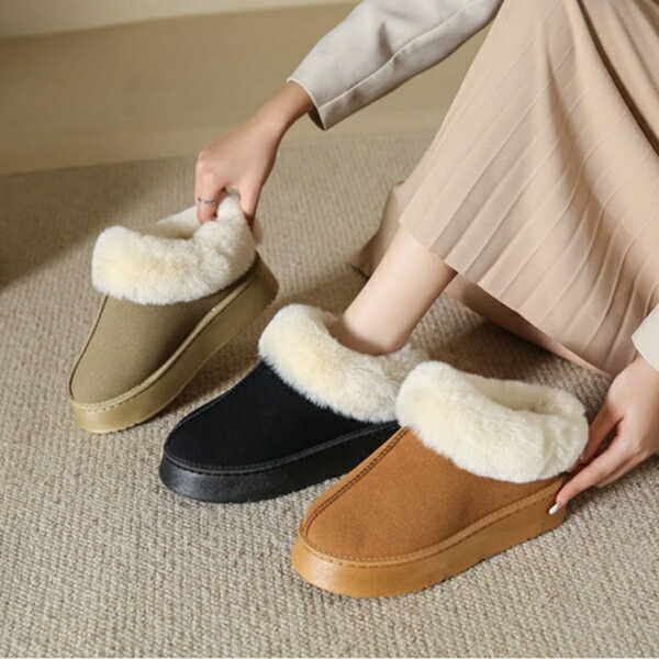 ムートンブーツ スノーブーツ レディース もこもこショートブーツ 防寒 厚底 4.5cmヒール プラット もふもふファーたっぷり 裏起毛 靴 シューズ 通学 合成スエード 履きやすい 暖かい 通勤
