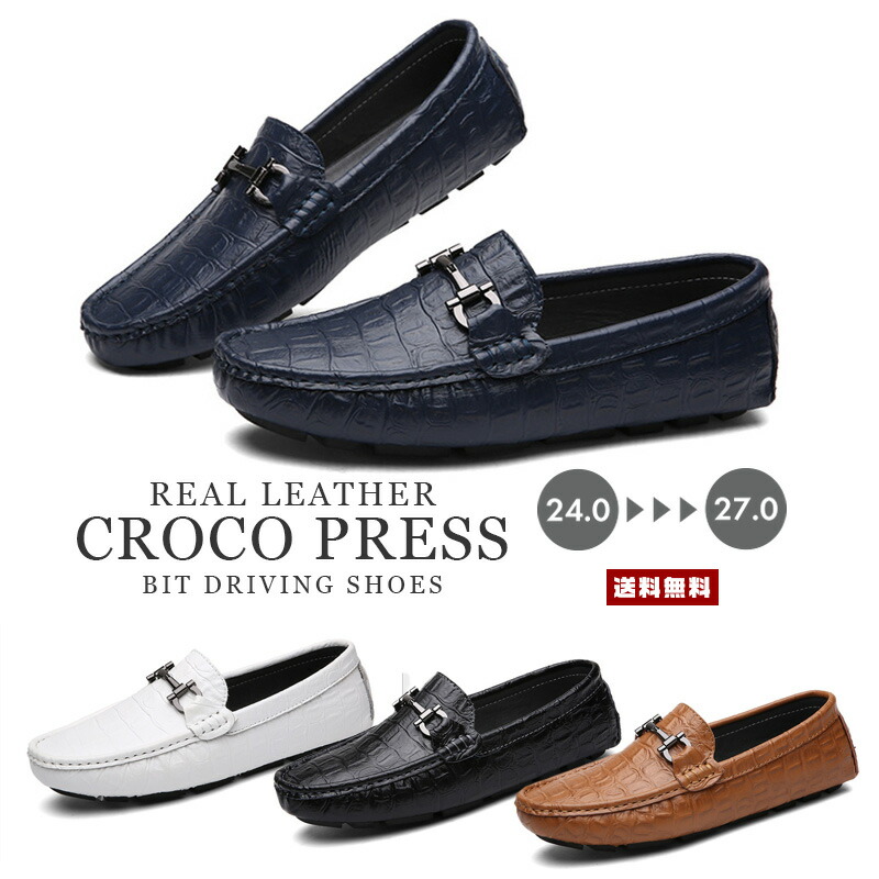 メンズ ビット付 クロコ型押し メンズ靴 ドライビングシューズ ドライビングシューズ靴