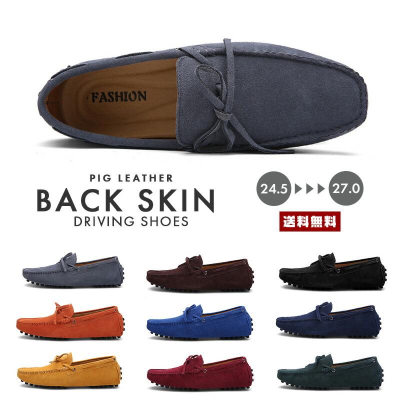 ドライビングシューズ 靴 リアルレザー 革 メンズ スウェード ローファー カジュアル シューズ バックスキン 皮 素足 デッキ スエード カラー豊富 大きいサイズ ビッグサイズ 大人気 ドライビング