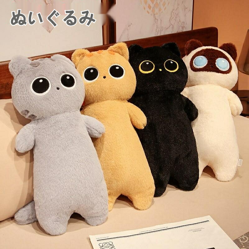 ぬいぐるみ 65 全4デザイン 猫 おもちゃ 動物 可愛い 彼女に ふわふわで癒される 柔らか 心地いい プレゼント ギフト ネコ キャット 黒猫 長いぬいぐるみ 抱き枕 クッシ タチバナ