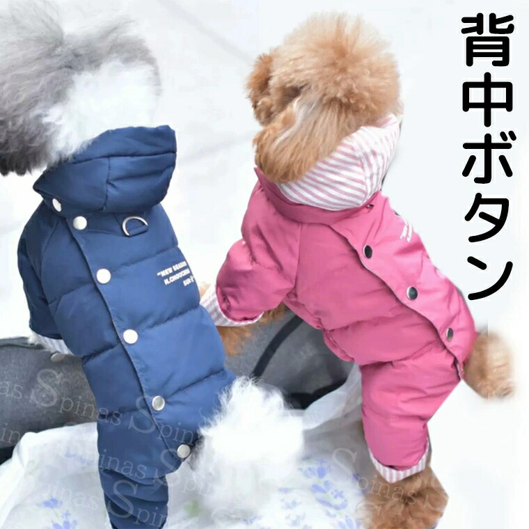 背中ボタンで着せやすい 寒い日もあったか散歩 フード付き 袖付 中綿 ダウン 長袖 ジャケット パーカー 防寒 犬服 ハーネス ドッグウェア 秋 冬 キャンプ 可愛い おしゃれ アウタ ペット服
