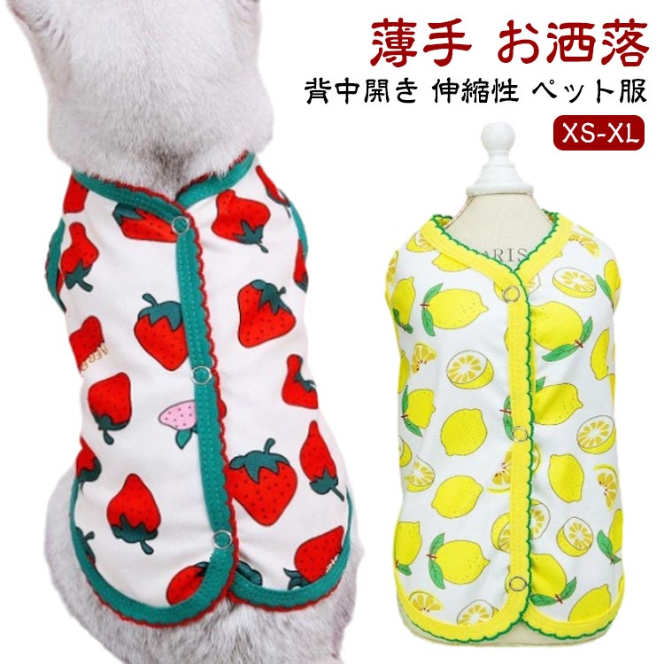 ペット服 レモン柄 可愛い 柔らかい ベスト 猫服 薄手 タンクトップ 着せやすい お洒落 いちご柄 抜け毛防止 お部屋着 犬服 女の子 暖かい 犬用 猫用 男の子 インスタ映え 小型犬 洋服
