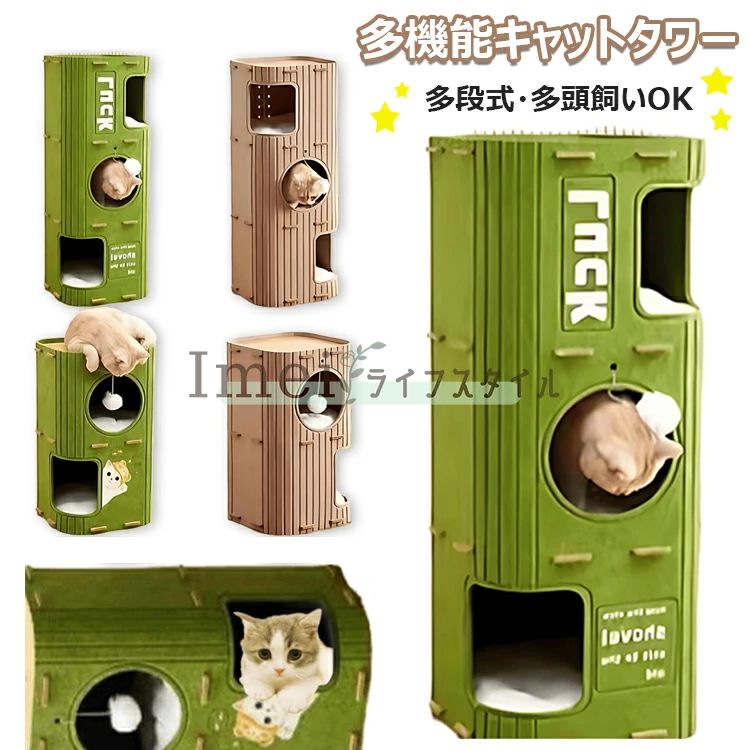 キャットハウス 多層構造 タワー 円筒 猫タワー 多機能 多頭飼い 猫 マンション 折りたたみ式 ちぐら ハウス 室内 寝床 猫ベッド サイザル麻 ペットハウス 単 爪研ぎ