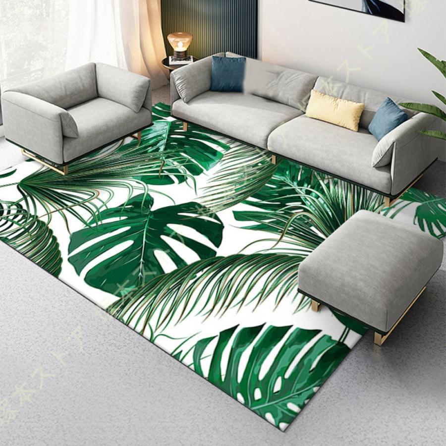 モンステラ ハワイアン 風 カーペット レトロ アンティーク ホットカーペット対応 洗える 防音 滑り止め インク 北欧 モダン ins風 リーフ 抽象的な シンプル