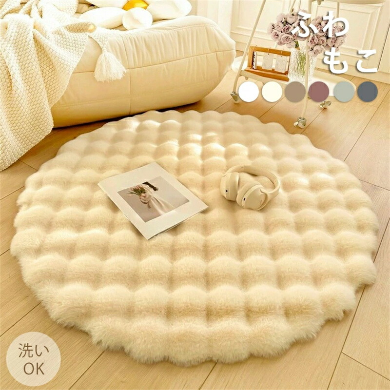 ラグ おしゃれ 円形 ラグマット ラビットファー調 カーペット 北欧ふわとろ もこもこ くしゅくしゅ マイクロファイバー 御洒落 ラグジュアリー 冬用 ふわふわ 厚手 低ホルム 静電気防止 モコモコ