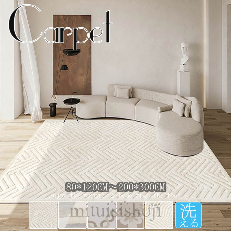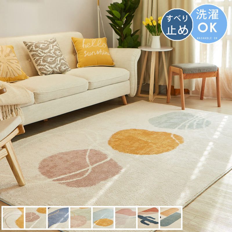 毎月1日 ポイント10倍 ラグ じゅうたん カーペット オールシーズン 長方形 四角 洗える おしゃれ 北欧 ウォッシャブル リビング 滑り止め付き 床暖房対応 デザイン 大人かわいい