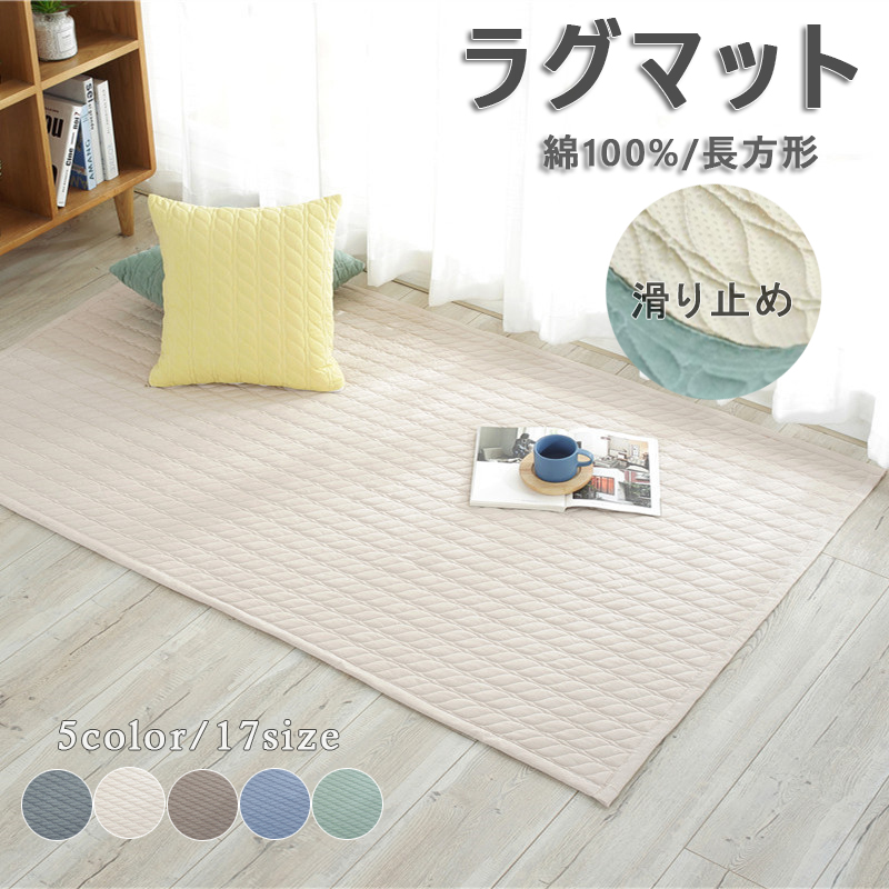 全17サイズ!ラグ 洗える 夏用 キルティング ウォッシャブル 赤ちゃん 綿 100% ラグカーペット 洗える 長方形 滑り止め付き ラグマット 丸洗い オールシーズン 春 夏 秋 冬 使える