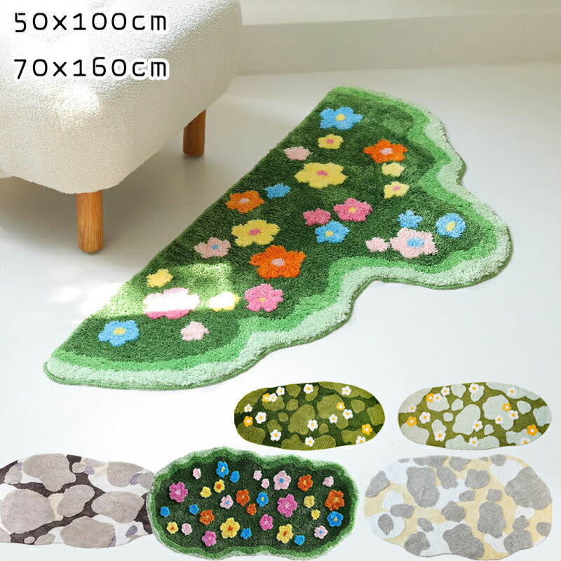 カーペット コケ 苔柄 花柄 ラグ ふかふか 3D立体植毛 超厚底 滑り止め付 不規則 フロアマット 洗える ラグマット 絨毯 じゅうたん マット 異型マット 森系 グリーン 異形 ナチュラ 緑