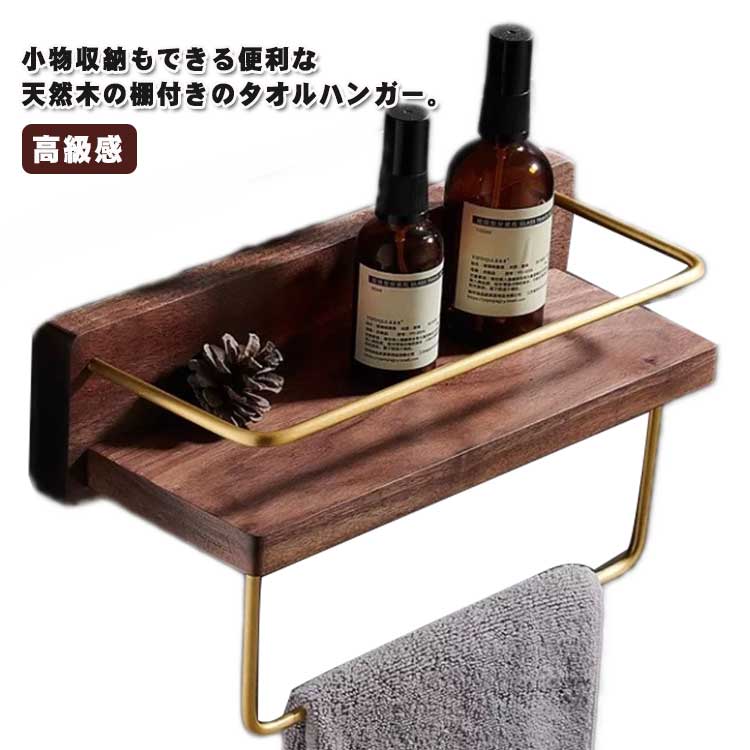 タオル掛け 洗面所 タオルハンガー 木製 壁 バスタオル掛け 棚つき トイレ 木 シンプル ヴィンテージ風 錆びにくい 北欧風 バスタオル置き 小物収納 高級感 一人暮らし 引越し祝い タオ おしゃれ