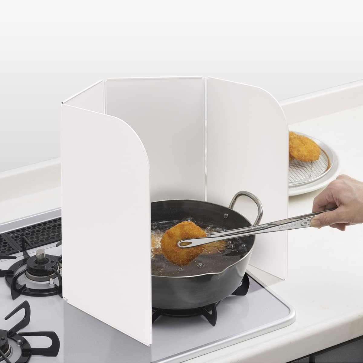 ジャバラに折れる4面式は、調理スペースに合わせて囲み方を自由に変えられる!揚げ物や炒め物などの調理中に、コンロ周りや鍋、それ以上油が飛び散らないようにしてくれます