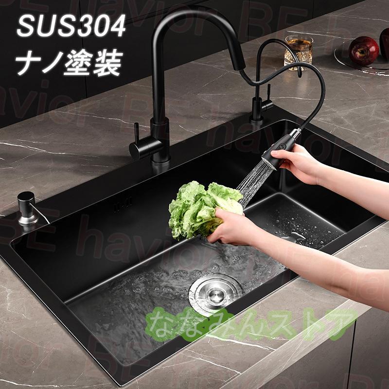 シンク ステンレス キッチン台 大判 DIY SUS304 ステンレス製 ナノコーティング 黒色 油対策 防錆 防蝕 耐摩耗 手入れやすい 厚手 ゴミ受け 混合水栓 蛇口 台所