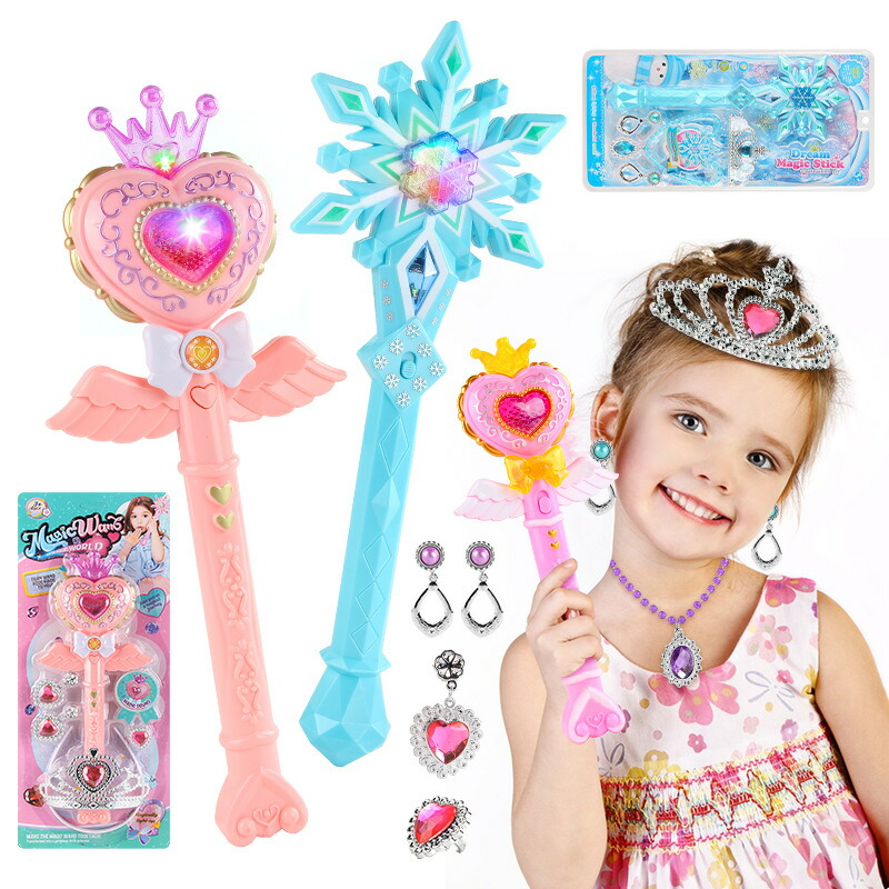 プリンセス アクセサリー 4点セット コスプレ用 女の子 飾り おもちゃ 子供 ティアラ 魔法のステッキ 魔法の杖 ネックレス イヤリング 髪飾り ハロウィン お姫様ごっこ 音声付き 変身