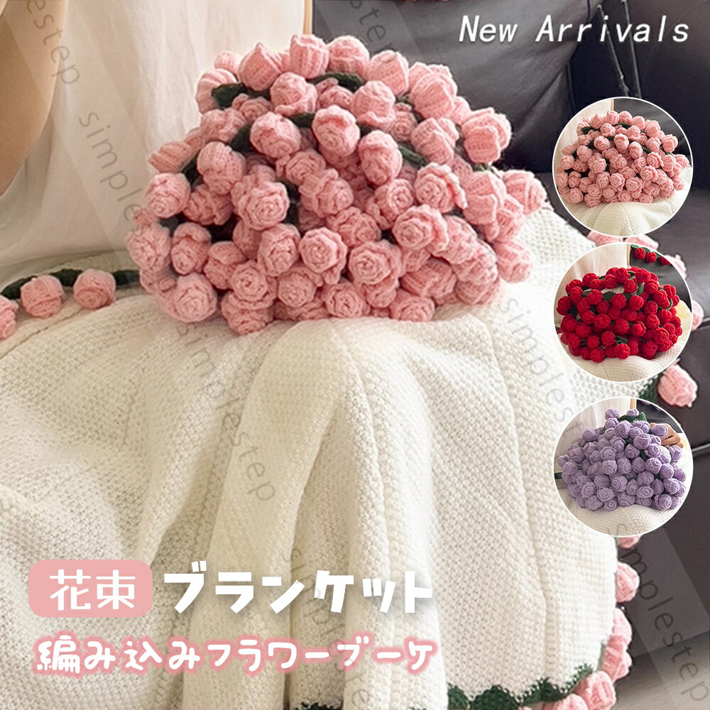 花束ブランケット 完成品 サイズ:120cm 特別なプレゼント 彼女への贈り物 誕生日, バレンタイン, 部屋飾り 手編み 洗える 結婚祝い,
