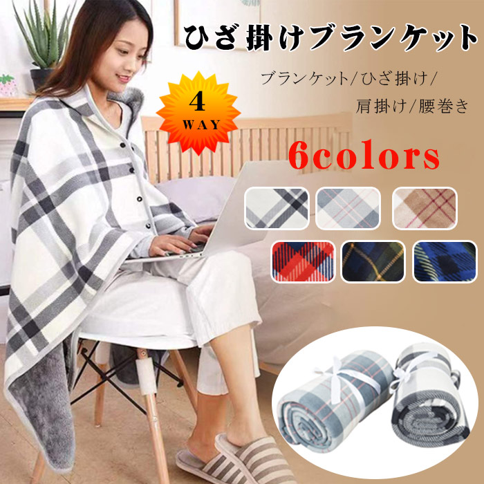 ひざ掛け ブランケット 判 羽織 巻き 掛ける 4way フリースひざ掛け チェック柄 大判 100×140cm もこもこ 膝掛け 毛布 ボタン付き サンゴフリース オフィス アウトドア 防 フリース
