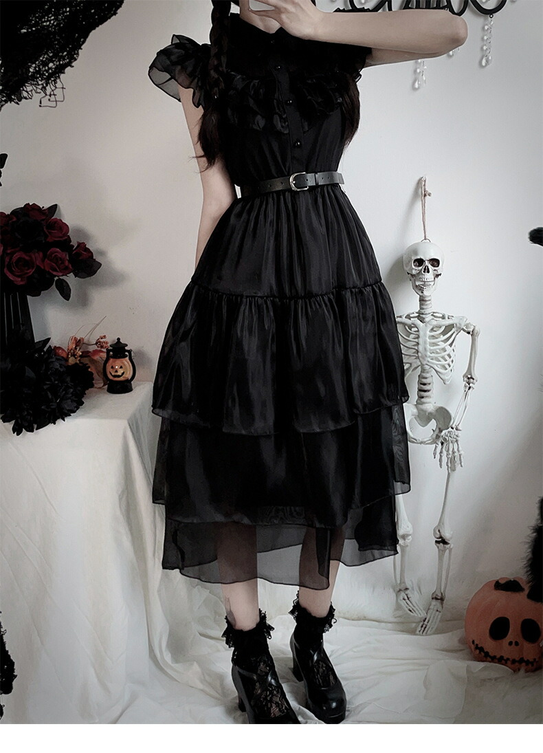 コスプレワンピース 2点セット ゴーストブライド 吸血鬼 ベルト付きソックス追加可 フリル ドレス ブラック ハロウィン ダーク ゴシック ロリータワンピース ロリータ