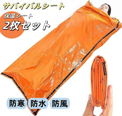 サバイバルシート 保温シート エマージェンシーシート 非常時用寝袋 2枚 ブランケット コンパクト 軽量 繰り返し使用可 避難 アウトドア 登山 車中泊 地震 防寒 防水 防風 津波