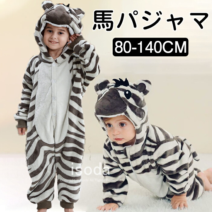 馬 着ぐるみ うま ロンパース パジャマ 2026年干支 午年 子供 ベビー カバーオール 女の子 男の子 秋冬 もこもこ 動物 斑馬 午 部屋着 ルームウェア つなぎ 長袖