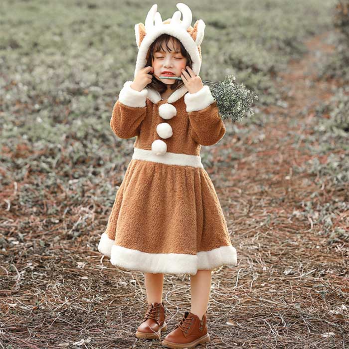 キッズクリスマス衣装 コスチューム 女の子 変装 サンタクロース トナカイ ワンピース 子ども用 クリスマス服 仮装 着ぐるみ サンタ服 あったか ジュニア服 ウ もこもこ