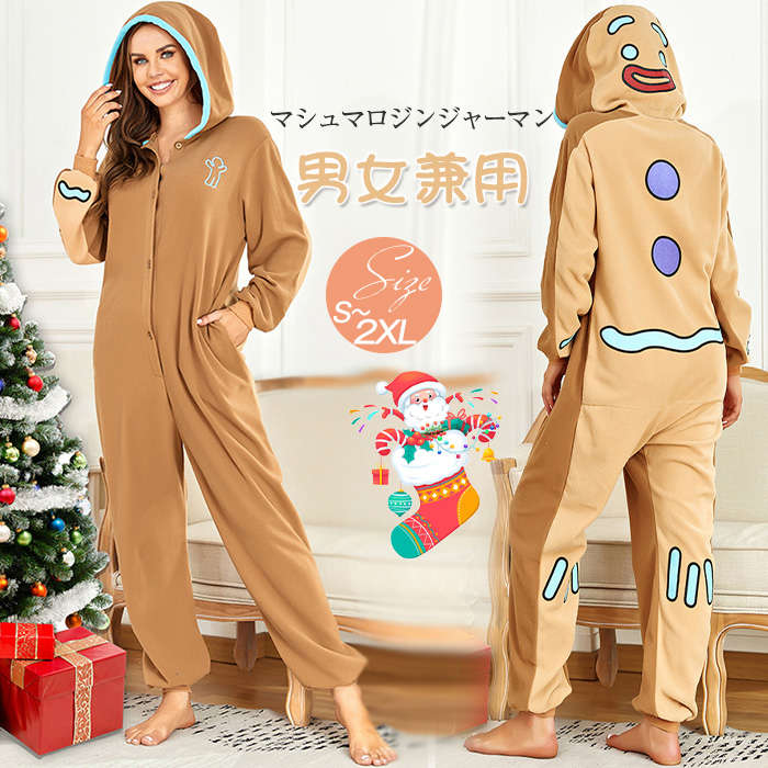 クリスマス ハロウィン コスプレ マシュマロジンジャーマン 衣装 仮装 着ぐるみ きぐるみ フード付き 女性 男性 アニマル パジャマ 部屋着 クリスマスコスプレ コスチューム ギ かわいい